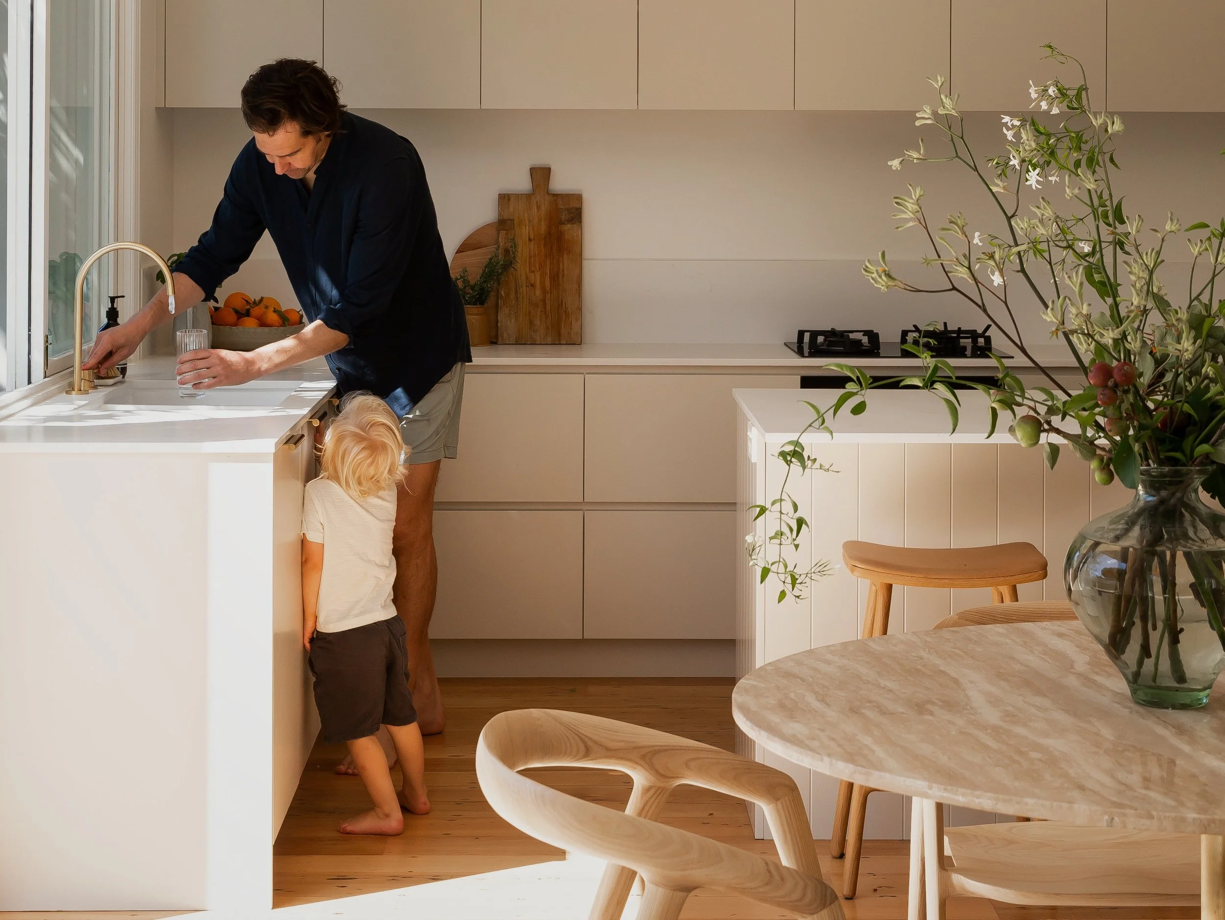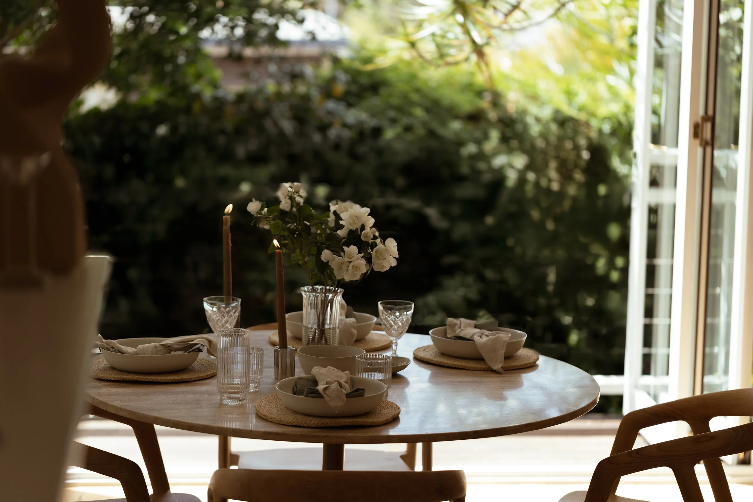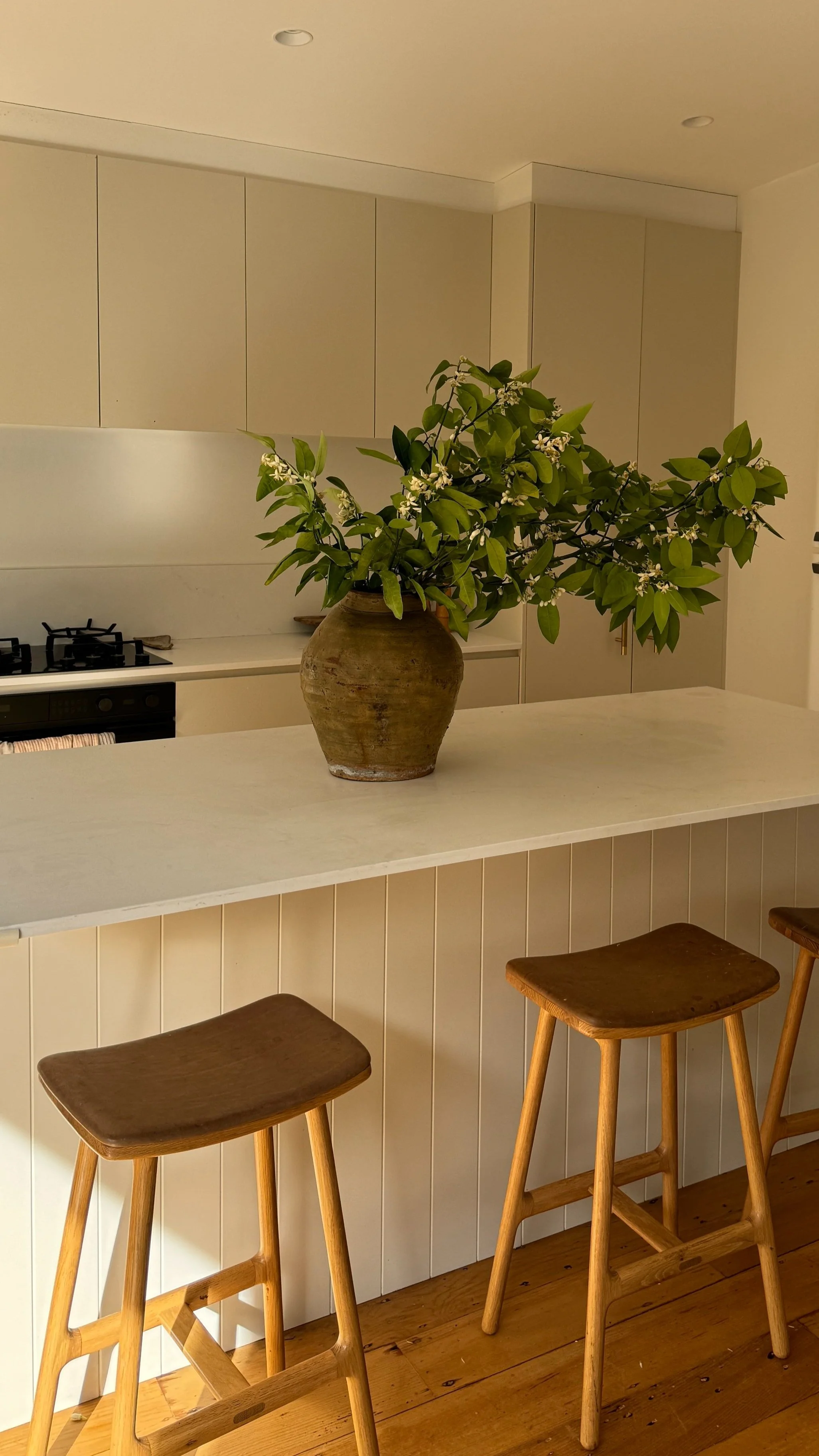 To honour that connection with nature, think about the materials you choose, both in the way you design and how you style a space. Raw timber, stone, linen, woven textures—these all have a way of softening a room and making it feel more grounded. Even smaller touches, like a timber stool, a handmade ceramic, or a woven tray, can bring warmth and character into a space.